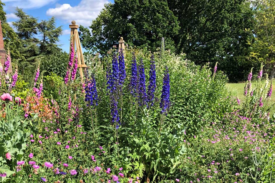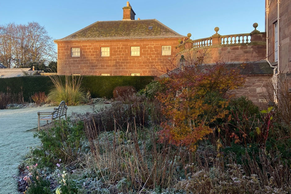 The gardens feature lovely areas that create interest throughout the year, with beautiful vibrant displays. The Well Garden is a mass of pink and orange candelabra primulas among ferns, hostas and a splendid Viburnum plicatum. Spring-flowering bulbs give way to an array of hardy perennials and herbaceous borders are particularly stunning throughout June. The variety of mature trees on the estate provides a spectacular show in autumn.