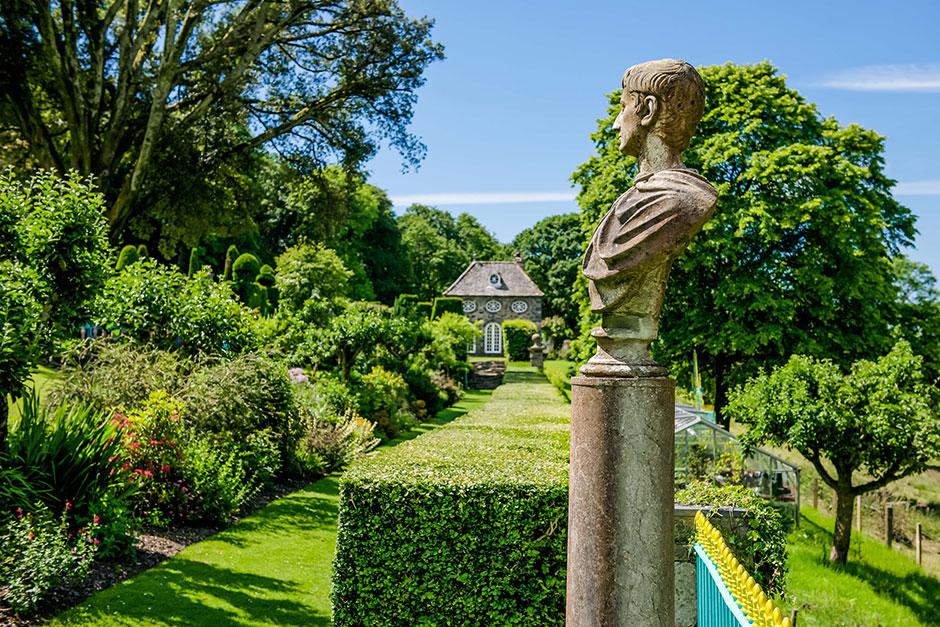 Surrounded by mountain peaks, the Grade I-listed gardens of Plas Brondanw are set within Snowdonia National Park and were created by Clough Williams-Ellis. The gardens are designed as a series of enclosed rooms, connected by axial views that lead to distant peaks and punctuated by pieces of sculpture. Inspired by the gardens of Renaissance Italy, the strong architectural influences are evident throughout, with stone walls, topiary, pools, fountains and avenues of trees.