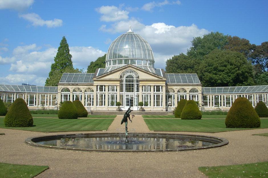 The most outstanding feature at Syon is the Great Conservatory, designed by Charles Fowler and built by the third Duke of Northumberland between 1820 and 1827. This glass palace of extraordinary size and beauty features curving wings that lead to smaller glasshouses at either side. Tree ferns and cacti are among its larger inhabitants. In front of the conservatory lies a formal garden of clipped yews and grass, dating back to the 1830s.