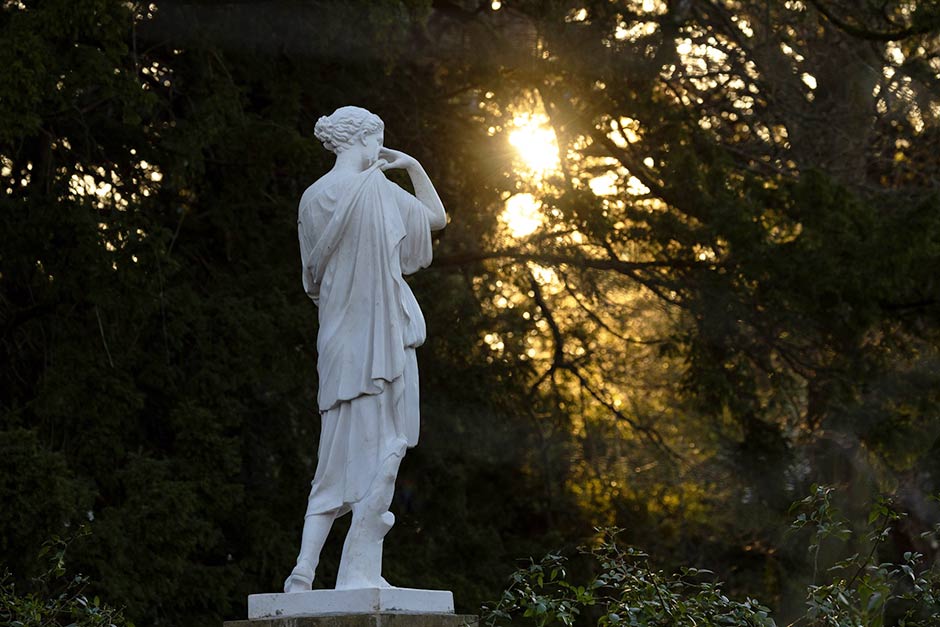Scented shrubs and snowdrops provide interest in winter, while spring showcases a host of yellow daffodils covering many of the Swiss Garden’s banks, along with early tree blossom and an interesting range of alpine plants and bulbs in the rock garden. Rhododendrons blaze with rich colour in May and June, followed by herbaceous planting in garden borders and seasonal bedding in the Dolphin Tazza bed. In autumn, deciduous trees lose their leaves and open up views across the garden.