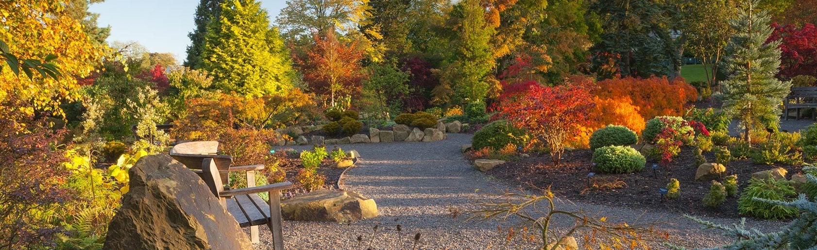 An original feature of Harlow Carr, the Sandstone Rock Garden has been revived in recent years – it reaches a crescendo of colour in autumn and new plantings link the area with the nearby Heather Beds