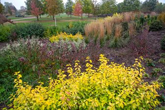 Planting includes Prunus, Pinus, Acer, Cornus, Betula and Japanese cedar. One hundred different types of Cornus (dogwood) will be monitored as part of an RHS Trial to establish which varieties perform reliably. Those plants that give good all round performance will be awarded the RHS Award of Garden Merit (AGM).