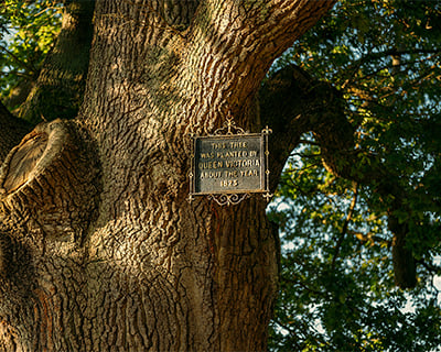 At RHS Garden Bridgewater, a towering Quercus robur, the largest tree in the middle wood, is believed to have been visited by Queen Victoria. To celebrate the Coronation of King Charles III in 2023, a tree was planted at each of the five RHS Gardens, while five oaks were dedicated to the late Queen Elizabeth II, Patron of the RHS from 1952 until her death in 2022.