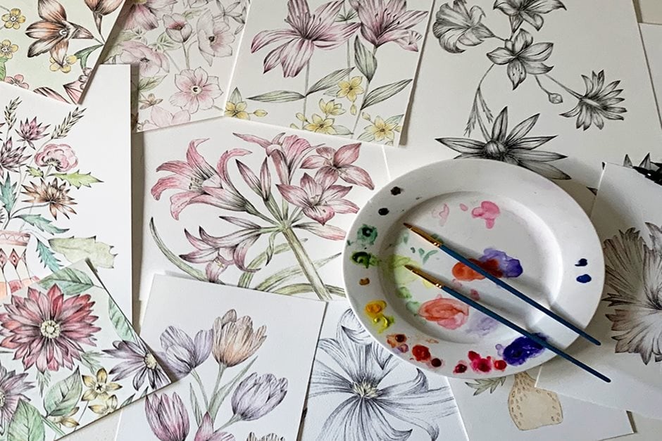 Spend time creating beautiful botanicals in pen and watercolour with artist Kate Dawes. A relaxed pen & watercolour workshop, suitable for adults of all abilities, from absolute beginners to the more experienced artist, who would like to try a new technique and approach to art. Kate will show you different techniques of pen drawing, along with how to overlay 'dry' watercolour to create beautiful botanical art. The workshop will be split into two phases – firstly, pen drawing and then 'dry' watercolour. The session will start with Kate showing you different pen drawing styles. She will help guide you to find a pen technique that suits you. Once you have done some pen drawing, Kate will help you find the best watercolour technique to complement your pen work. She will offer support and guidance throughout, to help everyone develop their personal style, understand composition, colour mixing, and achieve a more confident approach to art. The workshop will head into the garden to practise pen drawing techniques, and plants provided by the RHS Garden Bridgewater will inspire you. By the end of the workshop, you will have created an A4 botanical artwork to take home with you. Please note: This workshop takes place in our Stables Learning Studio and is not suitable for wheelchairs or those with limited mobility, as it is accessed by stairs. Tutor: Kate Dawes – Artist at Kate Dawes Studio. Over the last 25 years, Kate has art directed, produced and edited for the likes of the BBC, Red Magazine, Ford and numerous catalogues too. This has evolved into her latest mixed media work and art imagery, capturing the strong lines, structures and dusty jewel shades of a variety of flowers and foliage.