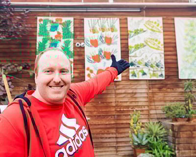 Back at their studio in Farnham, Enterprise19 sketched the plants and used their unique artistic style to create a composition for screen printing. The RHS Communities team provided horticultural input and support as the group worked up their designs and were impressed by the bold representations of each plant’s structure.