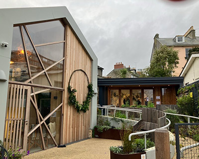 Studio West Architects Ltd led the design but the project was a collaborative one. Thoughtfully designed, the architecture is striking, with geometric timber window beams and accessible spaces both inside and out that balance beauty and function. Local schools, day centre residents and local craftspeople have joined forces to help transform this historic building.
