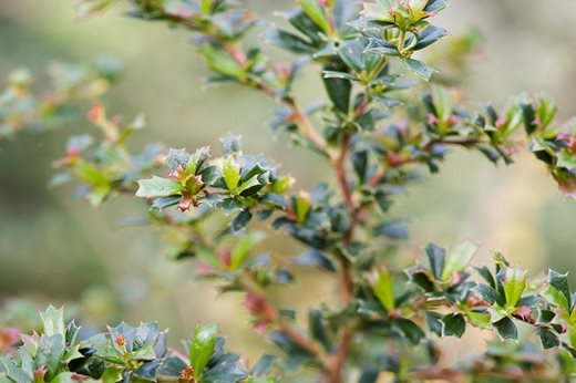 With leaves that are a very similar size to box, this cultivar is supposed to have a bushy, compact habit but we’ve found it to be rather lax and trailing so far. It should clip well to give a dense finish but can be vigorous in favourable conditions so, again, it may need regular clipping.