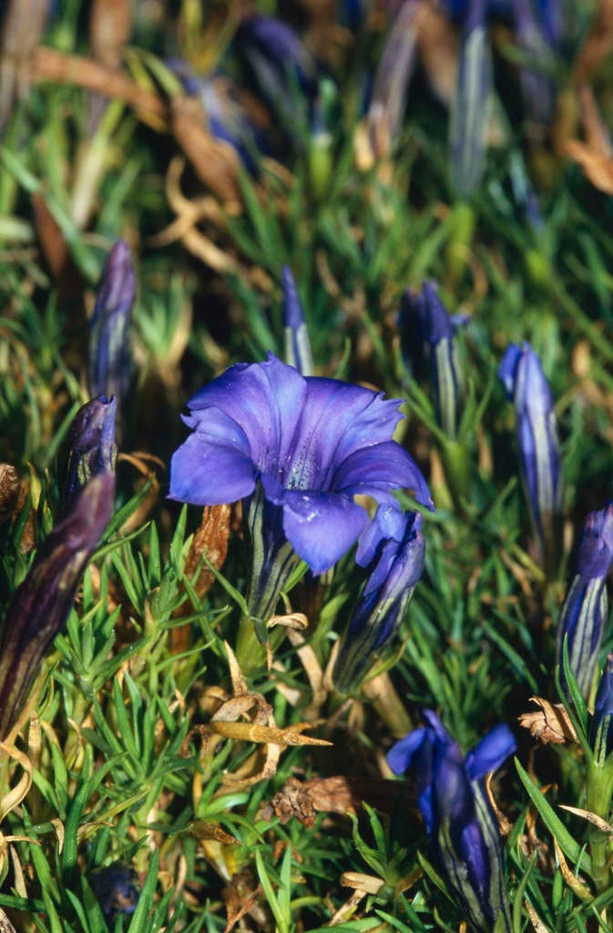 Gentiana can be annuals, biennials, herbaceous or evergreen perennials, mostly with showy, trumpet or salver-shaped flowers