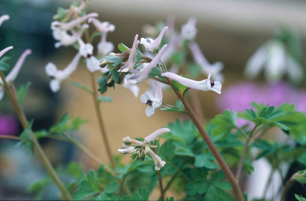 Corydalis can be annuals, biennials or tuberous or rhizomatous perennials, with ternately or pinnately lobed leaves and racemes of spurred, tubular flowers