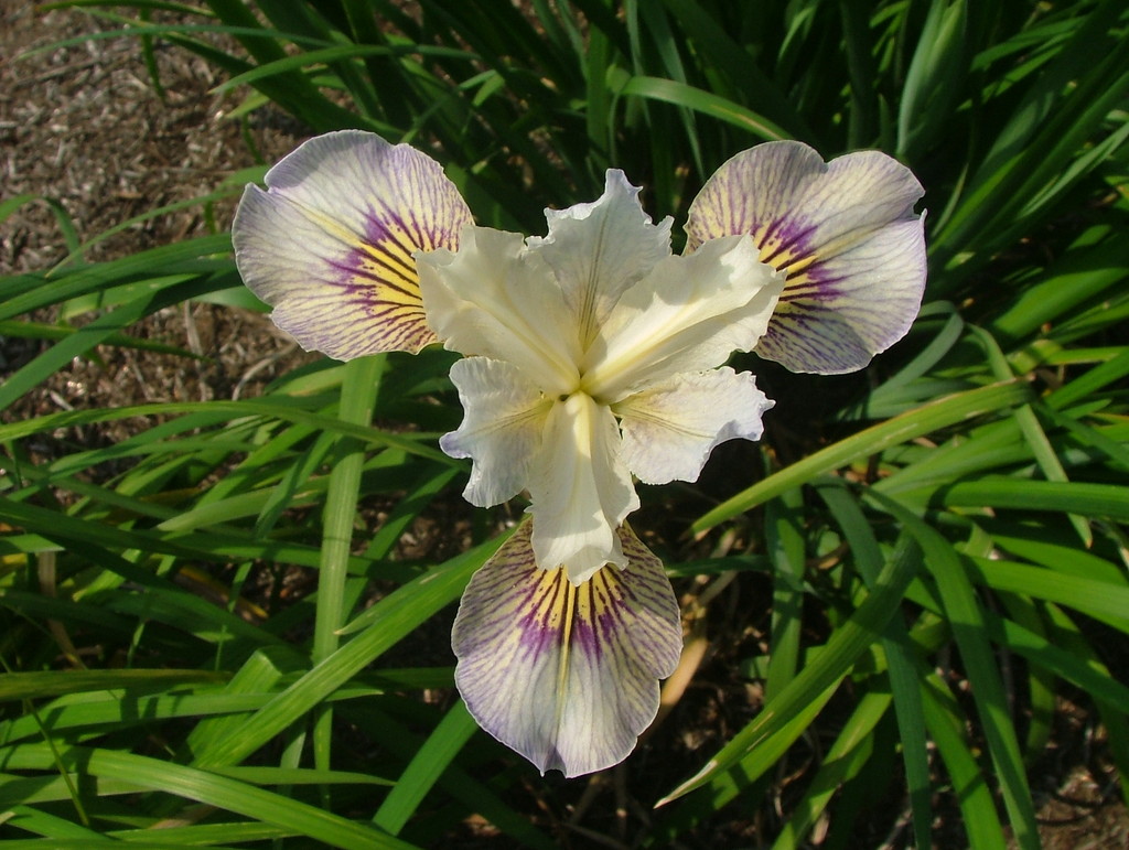 Cal-Sib irises are derived from hybrids between Pacific Coast types and Siberian irises, and are rhizomatous perennials with narrow, usually evergreen leaves and one or two beardless flowers per stem
