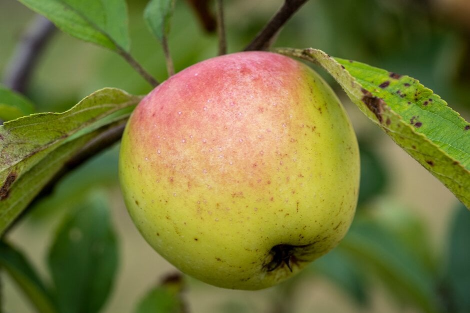 A small, mid-season cider apple, sometimes also used as a dessert apple, with pale yellow skin flushed and speckled with red, and with hard, sweet flesh. Stores for up to 8 weeks. Requires a group 3, 4 or 5 pollinator