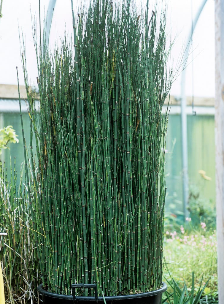 Equisetum are also known as horsetails or living fossils as they are the only living genus in Equisetaceae, a family of vascular plants which reproduce by spores rather than seeds. Plants have a rush-like appearance.