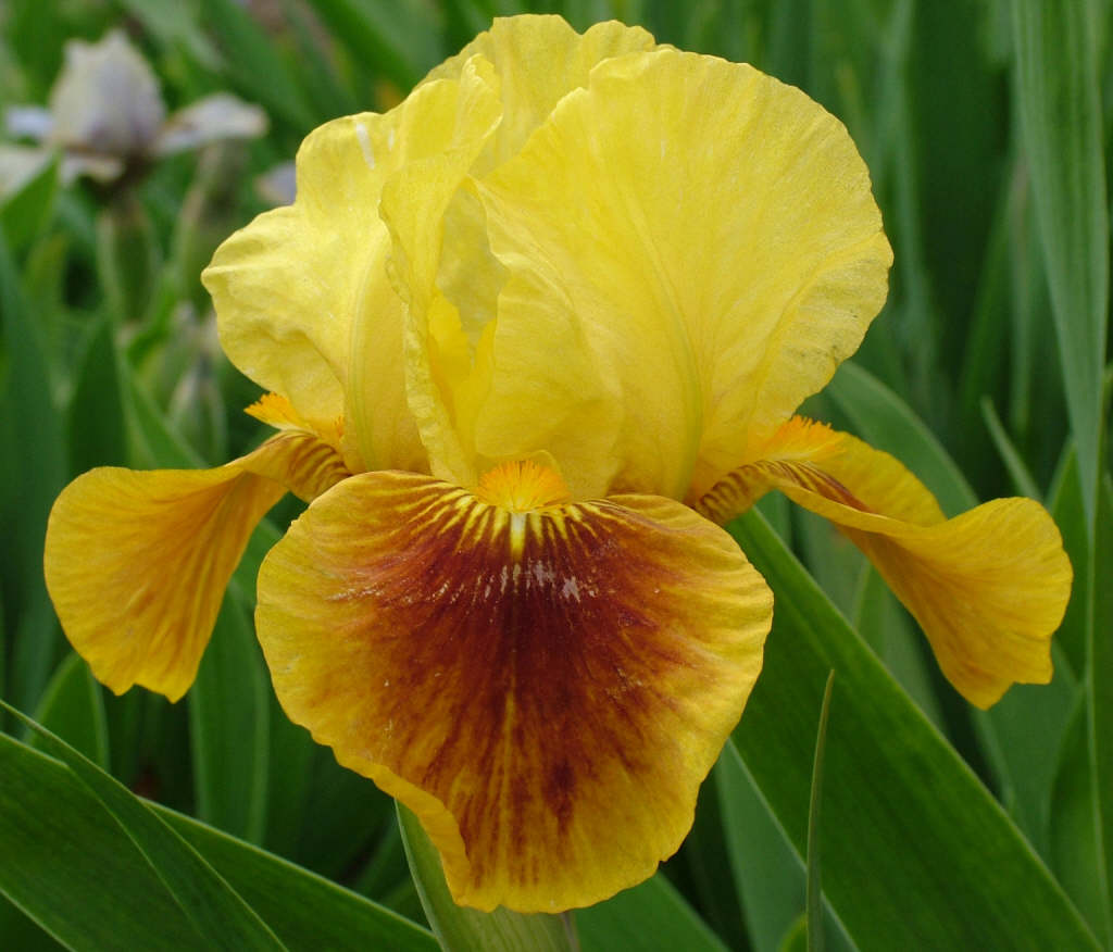 - Intermediate Bearded irises are deciduous rhizomatous perennials, growing between 40 and 70cm tall, with sword-shaped light glaucous green leaves and erect stems bearing flowers 10-13cm across, bearded on the falls, in late spring and early summer