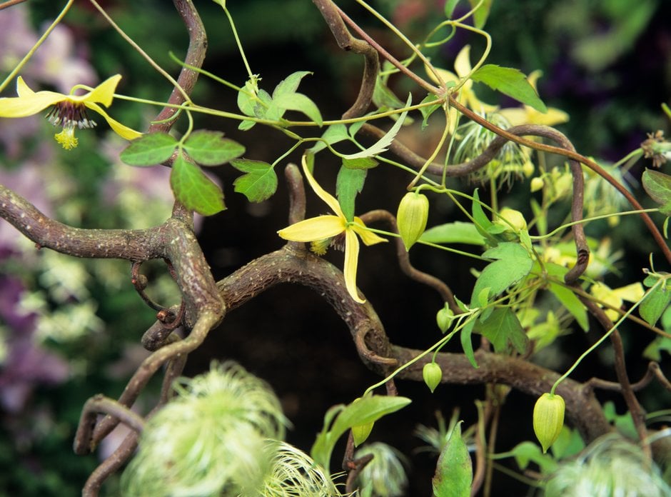 A vigorous climber to about 4m with small, divided leaves. Small, nodding, sulphur-yellow flowers with reflexed, twisted petals and prominent, purple-brown stamens are produced from mid-summer to early autumn, followed by long-lasting, silky seed heads