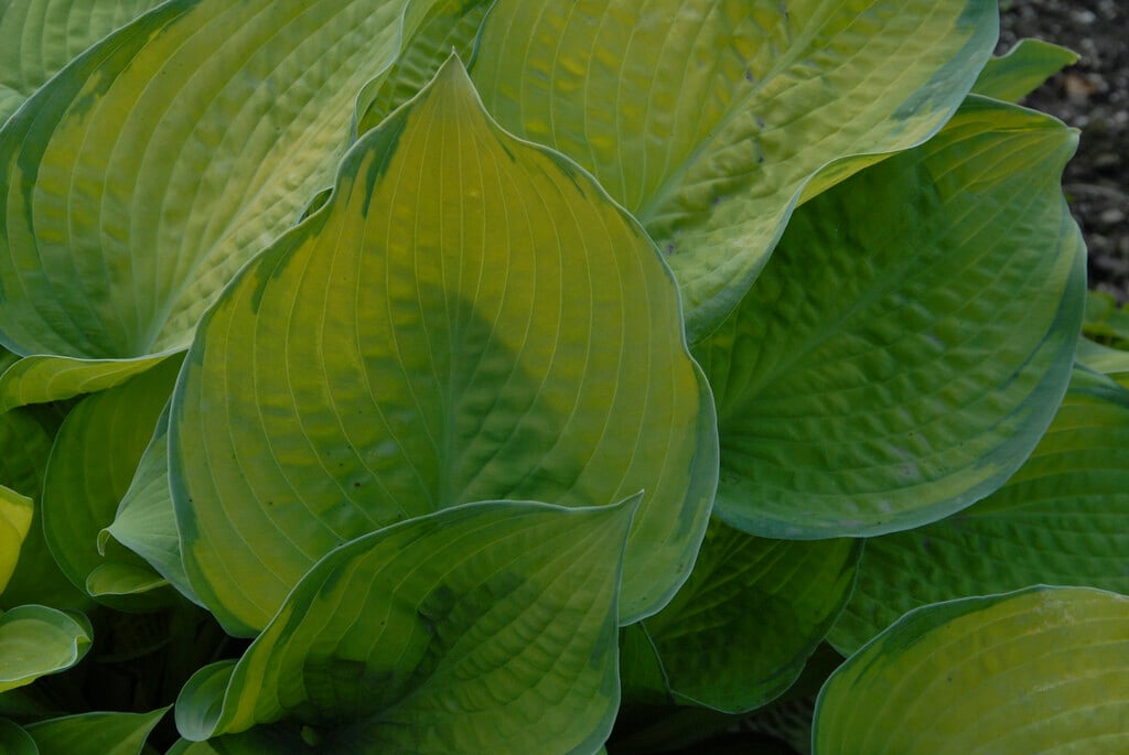 Hosta are clump-forming herbaceous perennials with simple, ovate or lance-shaped leaves, often attractively coloured or variegated, and erect racemes of nodding, funnel or bell-shaped flowers in early summer