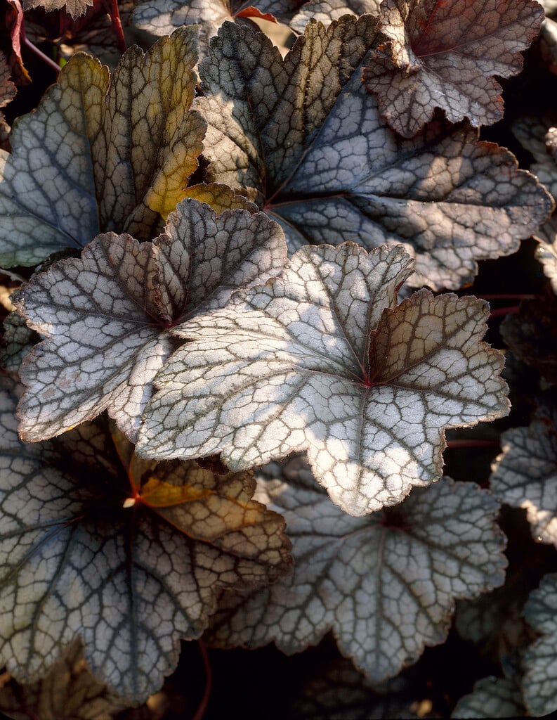 Heuchera are more or less evergreen, clump-forming perennials with attractive, rounded, shallowly palmately lobed leaves and racemes or panicles of small, tubular flowers, often with colourful calyces