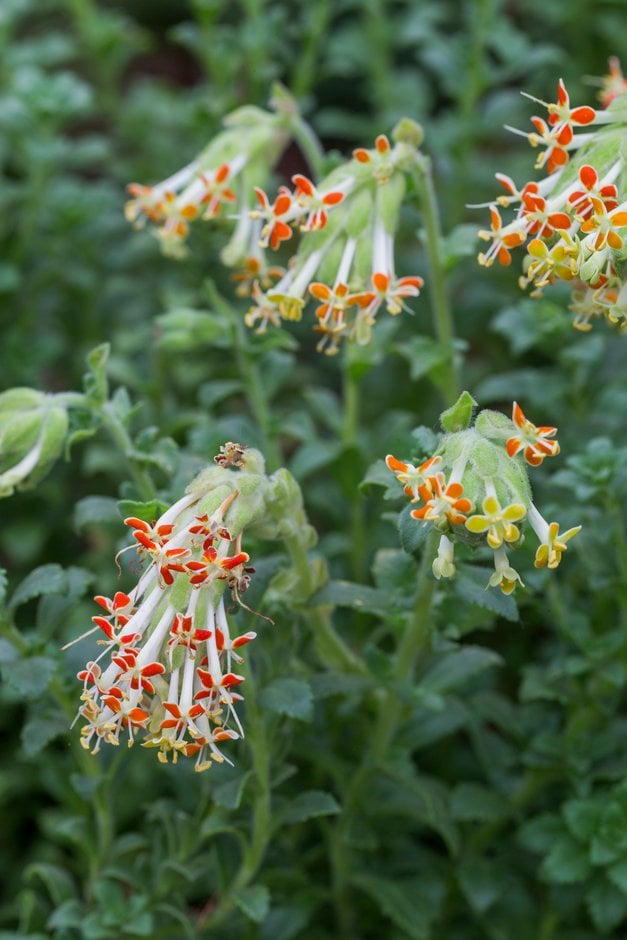 Glumicalyx are low-growing, aromatic evergreen perennial subshrubs with a height of up to 25cm. Upright stems produce clusters of white bell-shaped flowers, opening orange to red.