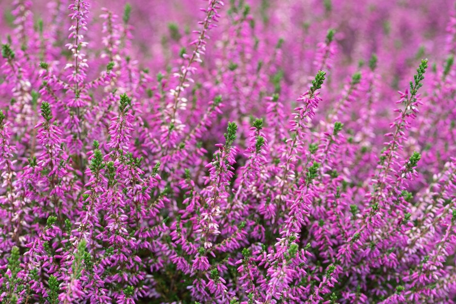 Calluna are low-growing or dwarf evergreen shrubs with stems clothed in tiny overlapping leaves, and terminal, spike-like racemes of small, 4-petalled flowers with coloured calyces