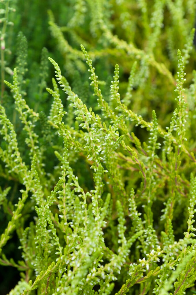 Calluna are low-growing or dwarf evergreen shrubs with stems clothed in tiny overlapping leaves, and terminal, spike-like racemes of small, 4-petalled flowers with coloured calyces