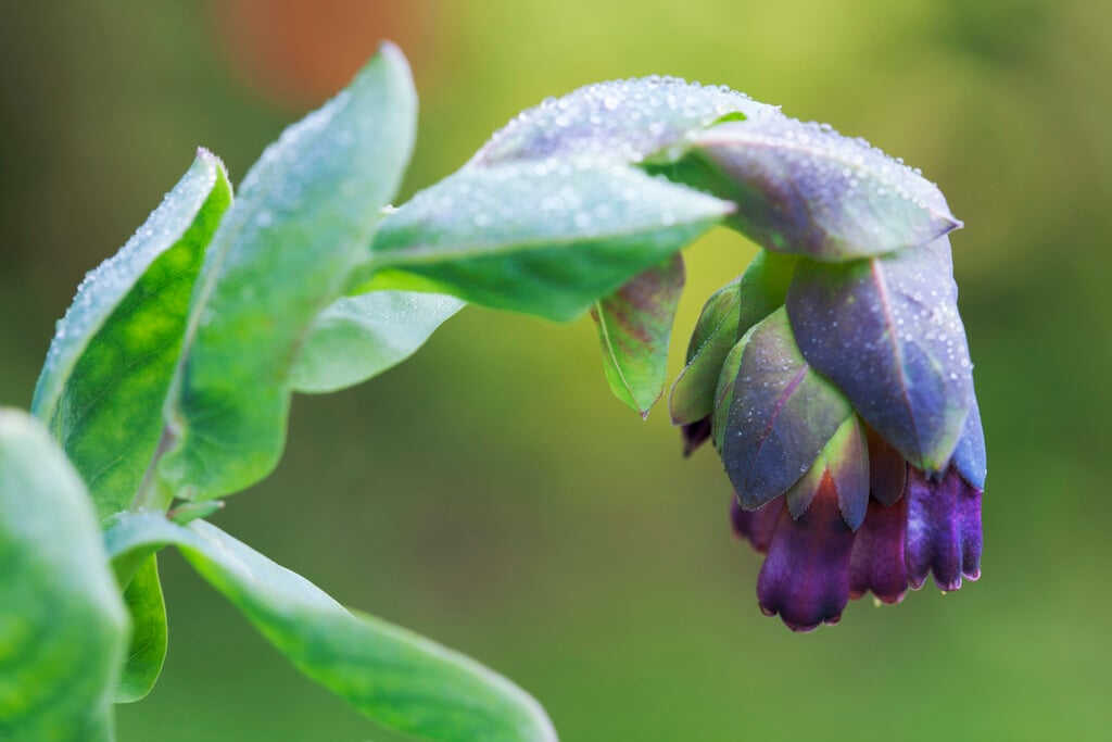 Cerinthe can be annuals, biennials or perennials, with simple, often greyish leaves and tubular flowers borne in a pendent terminal cluster with conspicuous bracts