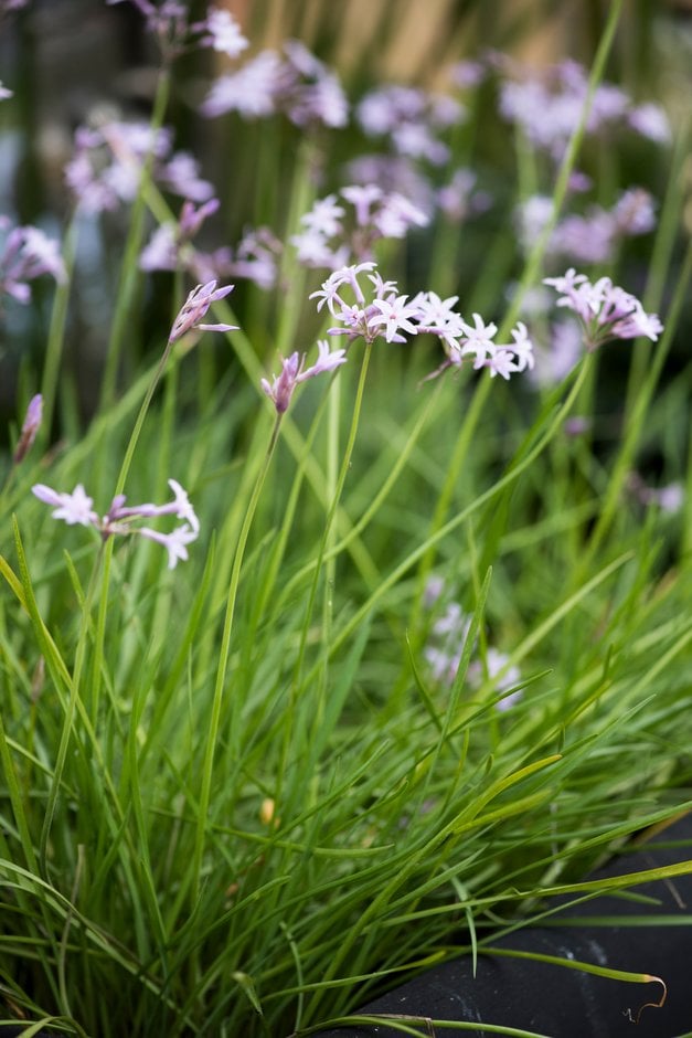 Tulbaghia are bulbous or rhizomatous perennials with linear, onion-scented leaves and umbels of small, star-shaped flowers with a small cup-like corona