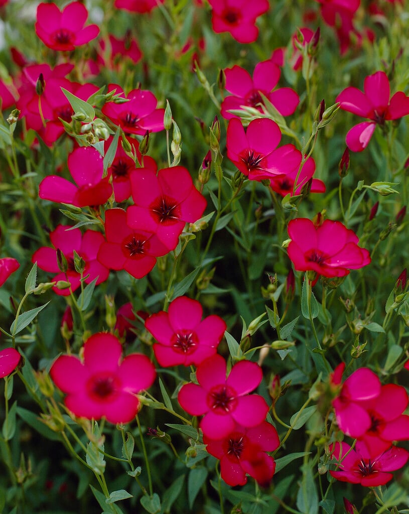 Linum can be annuals, biennials evergreen or herbaceous perennials or shrubs, with clusters of funnel-shaped flowers over a long period in spring or summer