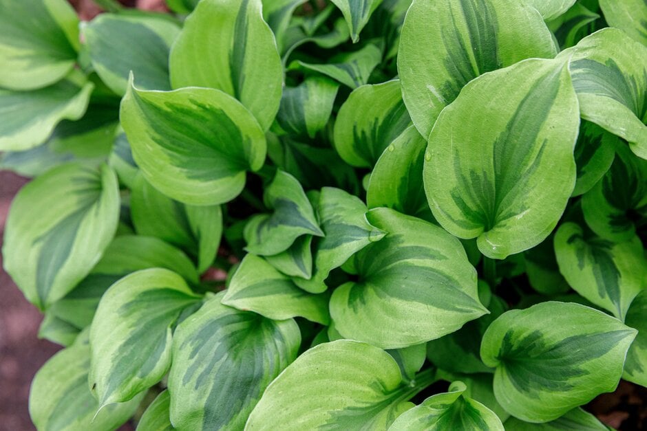 Hosta are clump-forming herbaceous perennials with simple, ovate or lance-shaped leaves, often attractively coloured or variegated, and erect racemes of nodding, funnel or bell-shaped flowers in early summer