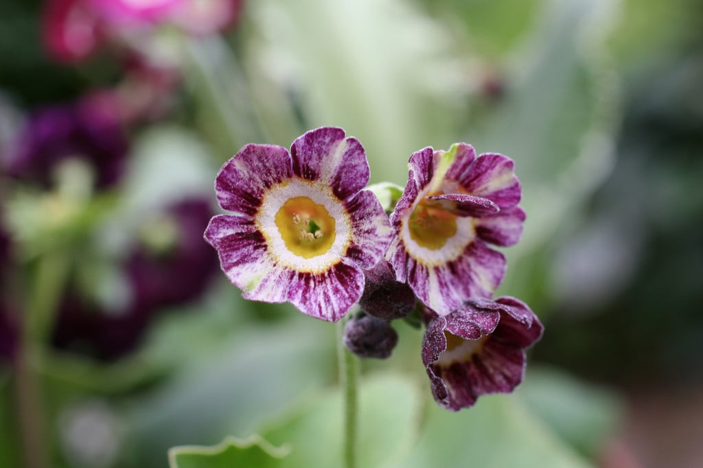 - Show Striped Auricula group primulas have the white centres of Show group auriculas, as well as stripes of colour that reach the edges of the petals.