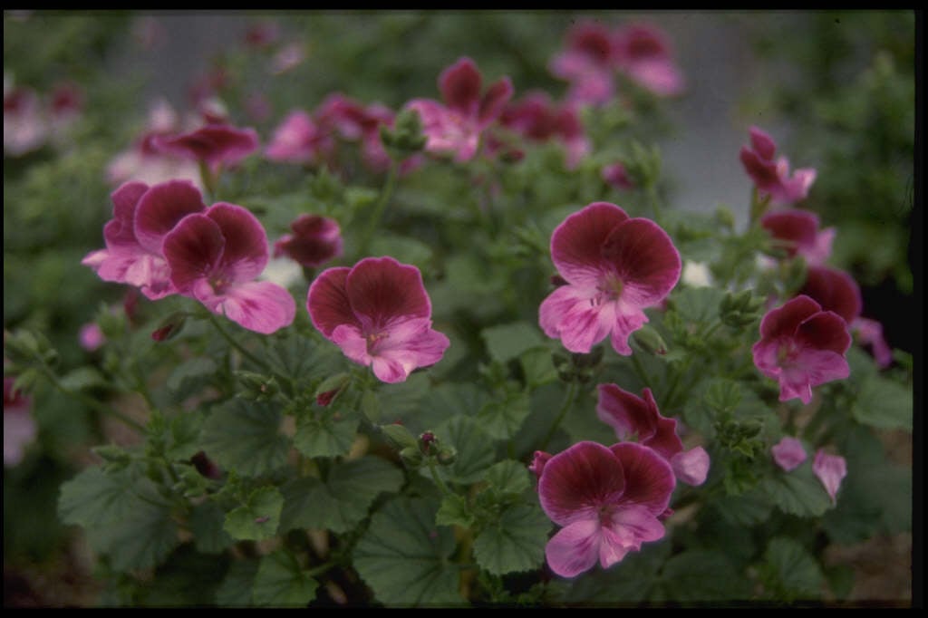 - Angel pelargoniums are compact, bushy perennials with small, rounded leaves, sometimes scented, and clusters of small single flowers in shades of pink, red purple or white