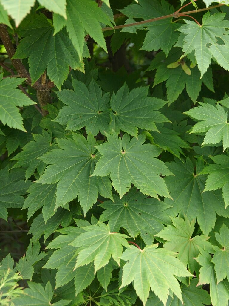 Acer can be deciduous trees or large shrubs with paired, often palmately-lobed leaves and small flowers followed by characteristic winged fruits. Many have fine autumn colour, and some have ornamental stems