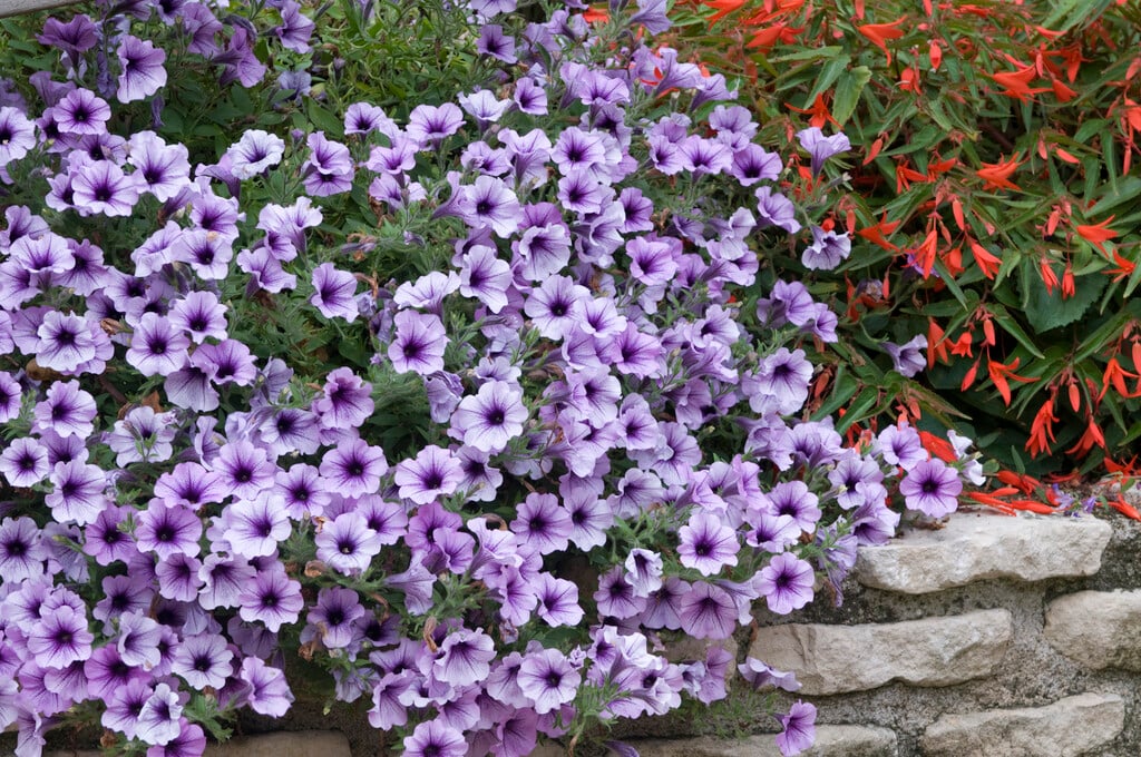 Petunia can be annuals or perennials, with simple leaves and large, solitary, trumpet-shaped flowers in the upper leaf axils from late spring to autumn