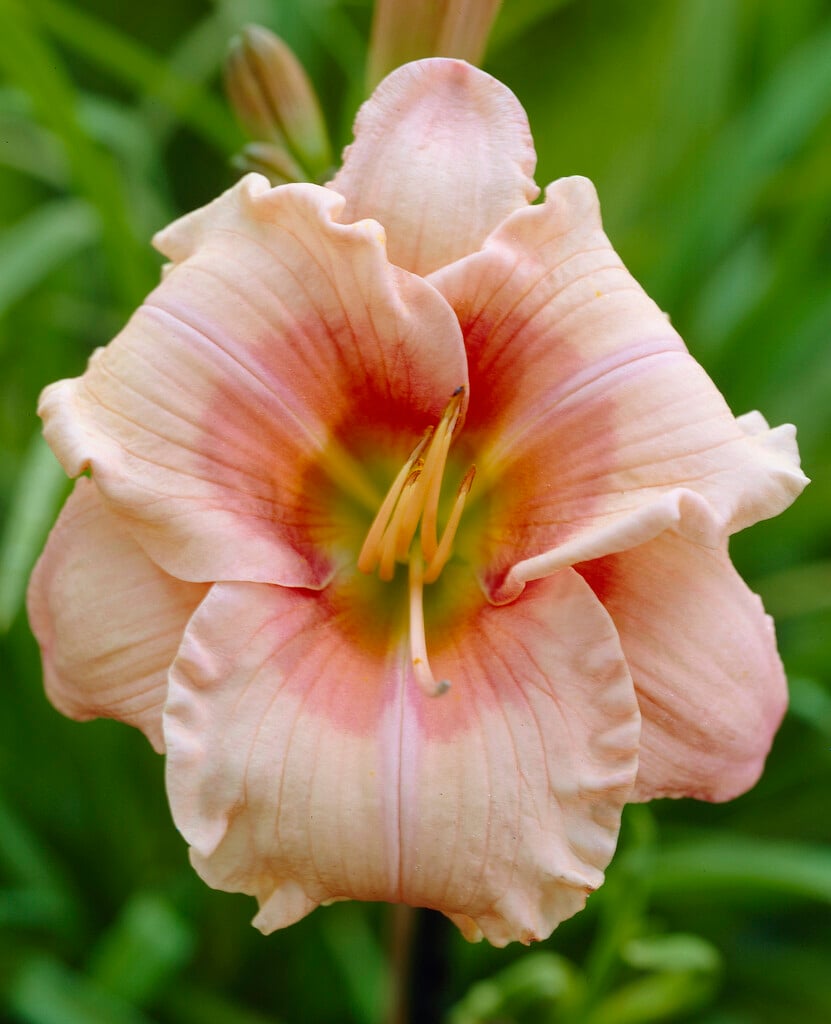 Hemerocallis may be evergreen or herbaceous perennials, with narrow, strap-shaped leaves and funnel-shaped flowers on erect stems in late spring or early summer
