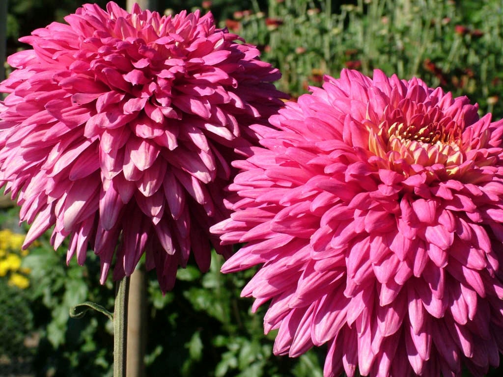 Chrysanthemum are erect woody-based perennials with aromatic, pinnately lobed leaves and flowerheads of diverse form, from late summer to late autumn