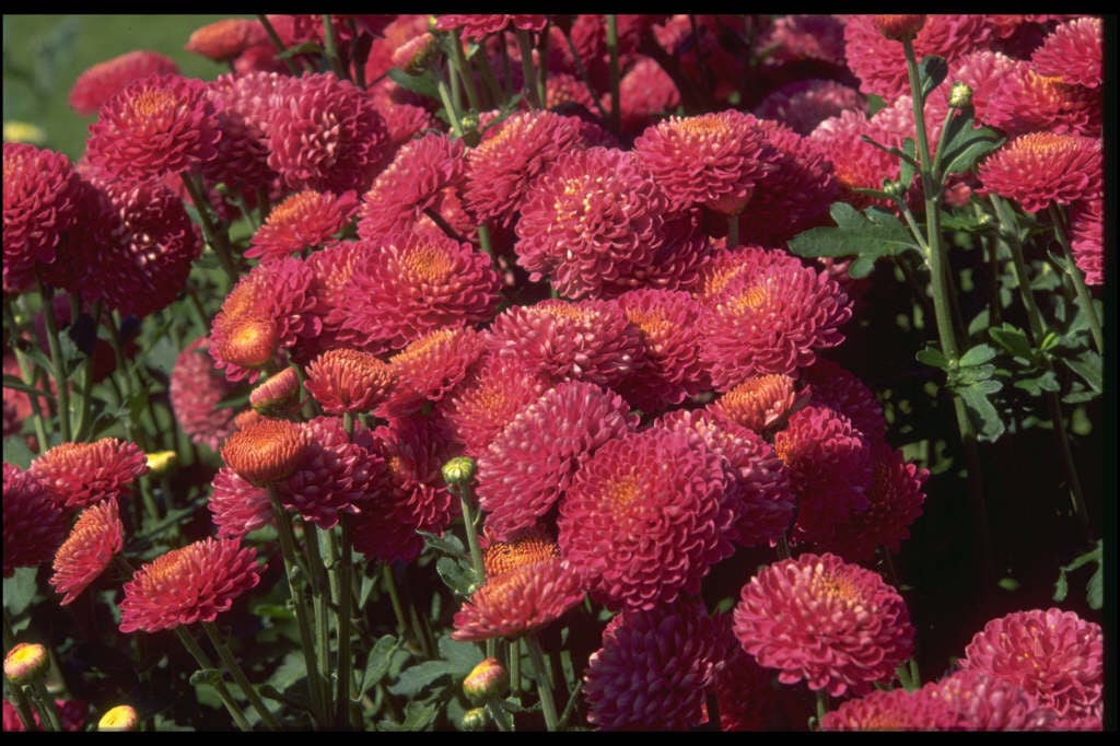 - Pompon-flowered, Early flowering Outdoor Spray chrysanthemums are compact plants with sprays of small, spherical flowerheads with tubular florets in early autumn