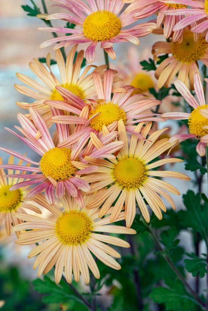 Chrysanthemum are erect woody-based perennials with aromatic, pinnately lobed leaves and flowerheads of diverse form, from late summer to late autumn