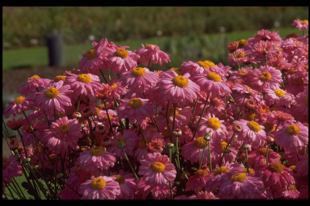 Chrysanthemum are erect woody-based perennials with aromatic, pinnately lobed leaves and flowerheads of diverse form, from late summer to late autumn