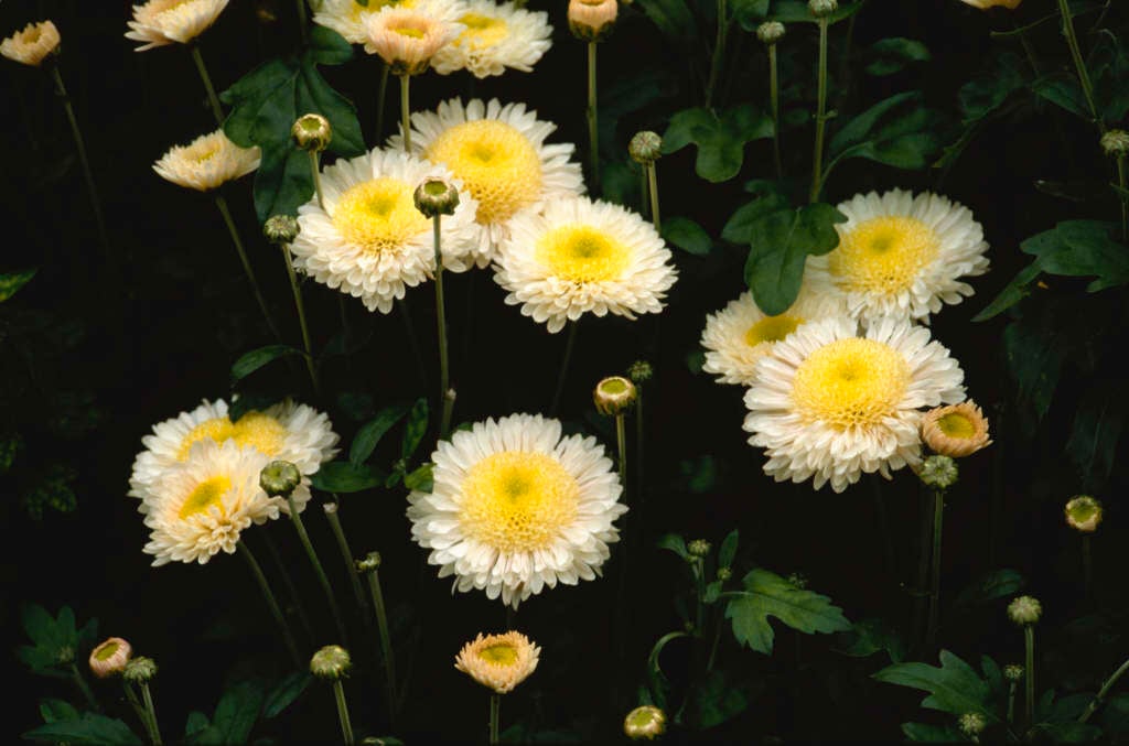Chrysanthemum are erect woody-based perennials with aromatic, pinnately lobed leaves and flowerheads of diverse form, from late summer to late autumn