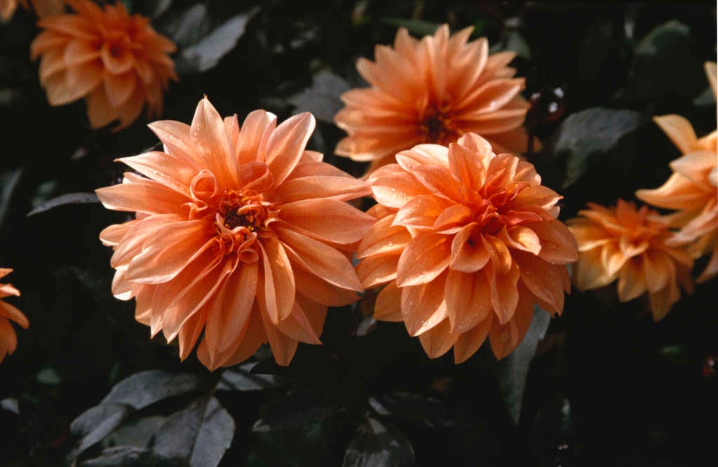 Dahlia are tuberous rooted perennials with pinnately divided leaves and showy flowerheads, double in many cultivars, in summer and autumn