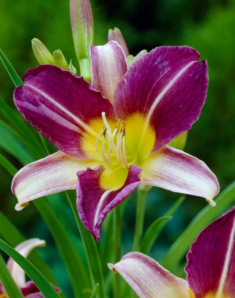 Hemerocallis may be evergreen or herbaceous perennials, with narrow, strap-shaped leaves and funnel-shaped flowers on erect stems in late spring or early summer