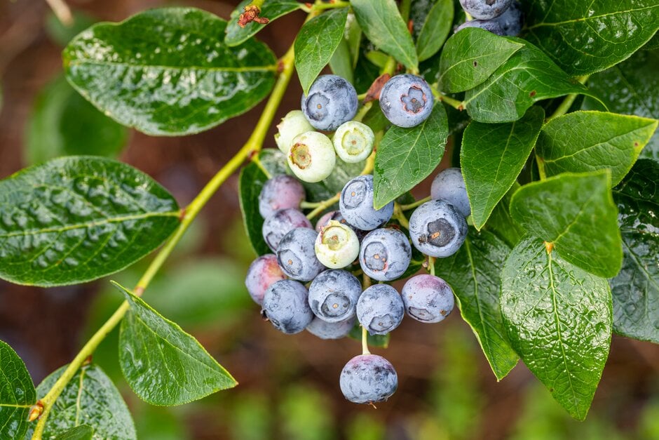 Plant in a sheltered site in well-drained, moisture-retentive, acidic soil, (pH 4.5-5.5) in sun or part shade. Alternatively grow in containers or raised beds filled with peat-free, ericaceous compost . Pot grown plants benefit from winter protection. For optimal pollination and yield plant three different cultivars. See blueberry cultivation for further advice