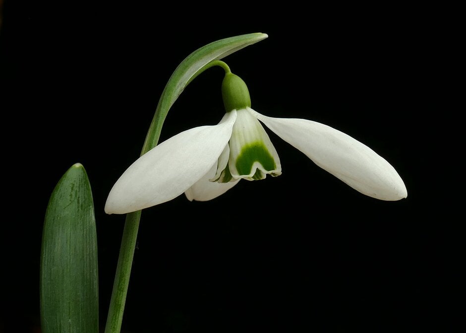 Galanthus are dwarf bulbous perennials with linear or strap-shaped leaves, and solitary, often honey-scented, nodding flowers with 3 white outer tepals and 3 smaller inner ones often marked with green