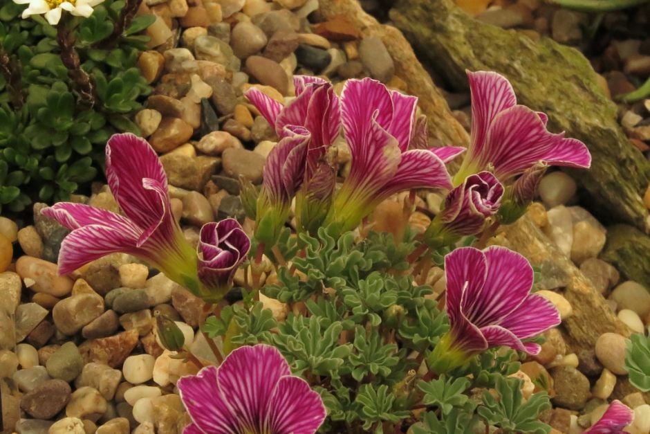 Oxalis can be annuals or perennials, with fibrous, bulbous or rhizomatous rootstocks, palmately divided leaves and funnel-shaped or bowl-shaped flowers that mostly close in dull weather and at night
