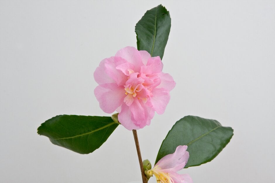 Camellia are evergreen shrubs with simple, ovate, glossy, leathery leaves and showy flowers with solitary or clustered flowers early in the year