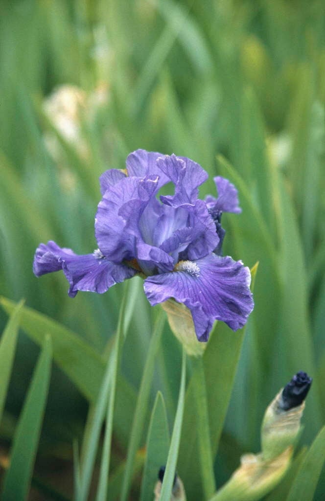 'Mary Constance' is a vigorous perennial to 60cm, with blue-green foliage and stems bearing up to 5 flowers, the standards deep violet-blue, the falls similar but less blue, with dark violet veining and a blue beard