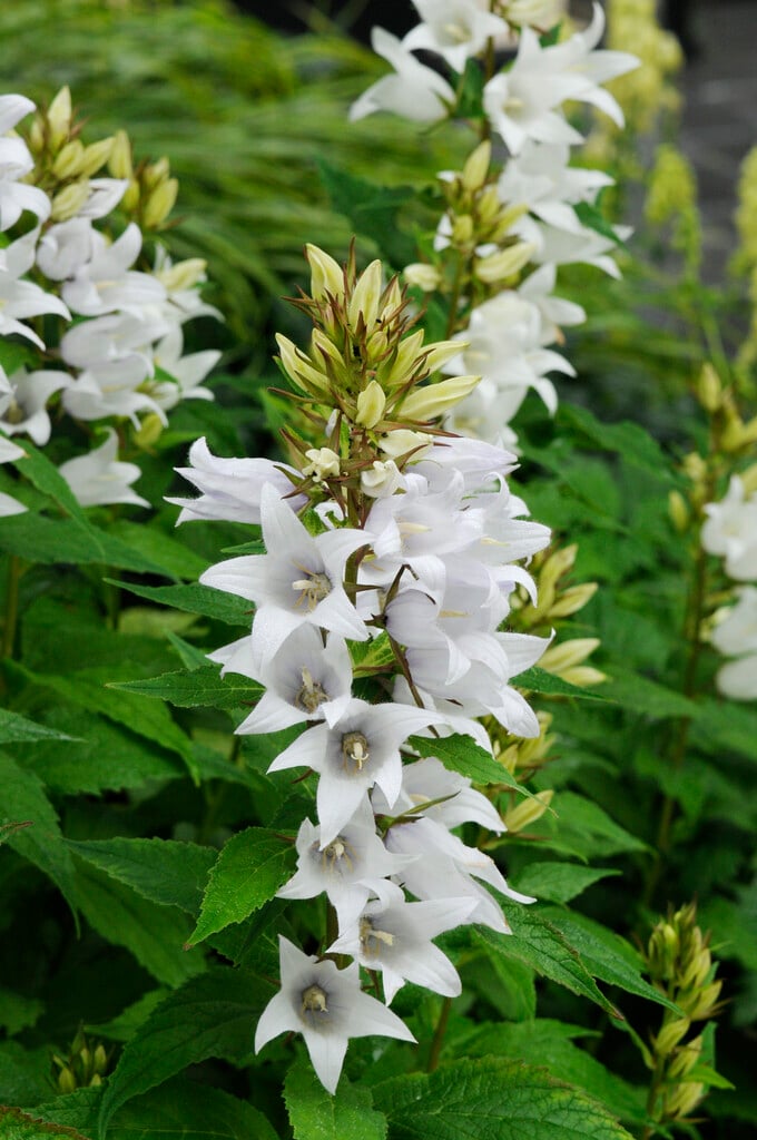 Campanula may be annuals, herbaceous or evergreen perennials, with bell or star-shaped, often blue, flowers in late spring or summer