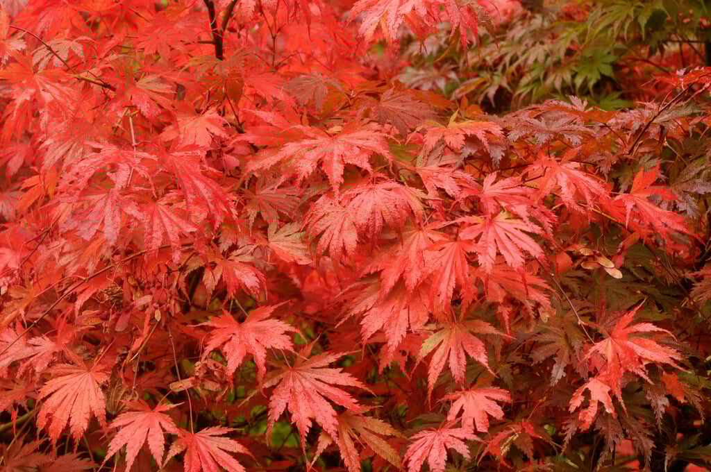 Acer can be deciduous trees or large shrubs with paired, often palmately-lobed leaves and small flowers followed by characteristic winged fruits. Many have fine autumn colour, and some have ornamental stems
