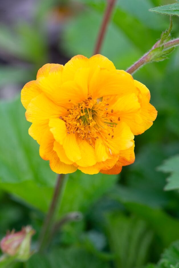 A low-growing, clump-forming rhizomatous perennial to around 30cm high, with basal rosettes of lobed and toothed green leaves. Soft, semi-double upward-facing, nodding orange to yellow flowers are held on stems above the foliage from late spring to late summer. Ideal for the front of a flower border. The name means 'Evening Sun' in German