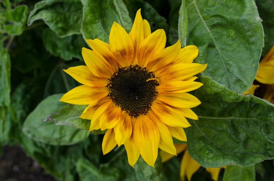 Helianthus can be tall, erect annuals, tuberous or rhizomatous perennials, with coarse simple leaves and large daisy-like flower-heads