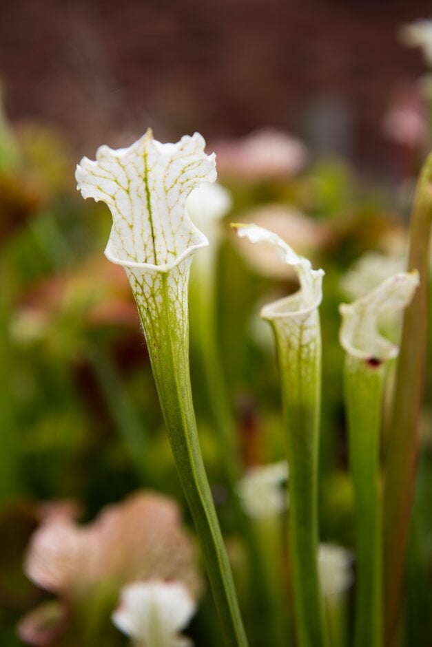 Grow under glass, keep moist in full light with shelter from hot sun. Use an acidic potting medium with moss. In winter, keep slightly drier, cool and well ventilated. Irrigate with lime-free water. They will generally lose some of their leaves over winter during a period of dormancy. Most Sarracenias can be grown outside in milder parts of the country, but care should be taken in colder conditions. Choose a position in full sun, sheltered from cold winds. See carnivorous plant cultivation