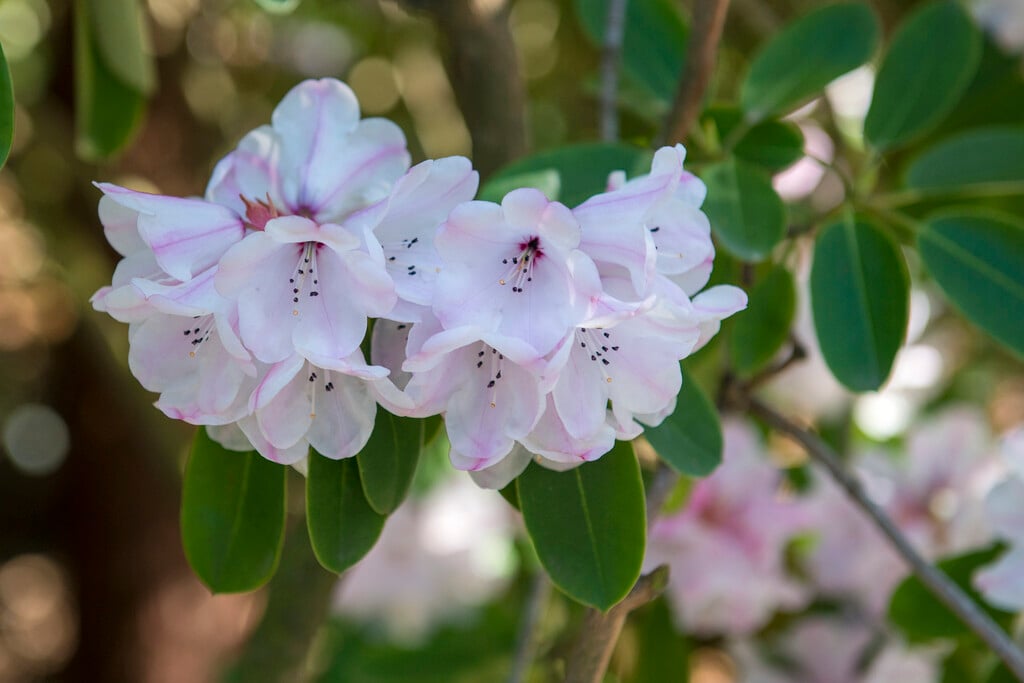 Rhododendron can be evergreen or deciduous shrubs or trees, with simple leaves, sometimes with a dense colourful indumentum of hairs on the lower side, and funnel-shaped, bell-shaped or tubular flowers that may be solitary or in short racemes